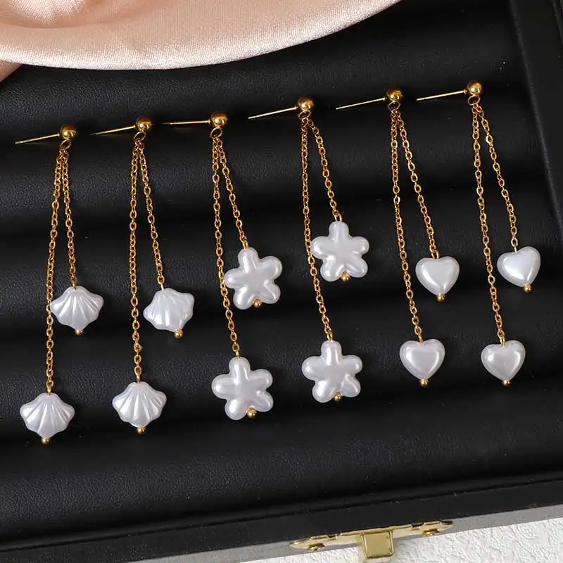 Bold Vintage Baroque Pearl Drop Earrings for Women Trendy Stainless Steel Stud Jewelry Cute Sweet Floral Style for Parties